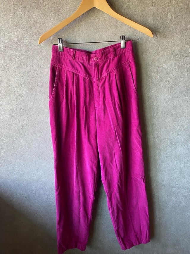トロッとした履き心地のパンツ。 サーモンピンクが目を引きコーディネートの主役になるアイテムです。 ゆったりしたシルエットなので夏らしい抜け感を出してくれます。 シンプルなTシャツと合わせるのがおススメ。 ウエストのサイズがかなりゆったりなので場合によっては調整が必要です。 ◆Made in USA ◆Size 総丈 85㎝ 股上 28㎝ 股下 55㎝ ウエスト 76㎝ わたり幅 51㎝ ◆Condition C ◆素材 リネン55% レーヨン45% ◆着用モデル:153㎝ *返品・交換は出来かねます。 サイズ・コンディション等につきまして必ずショッピングガイドをご確認の上ご購入下さい。