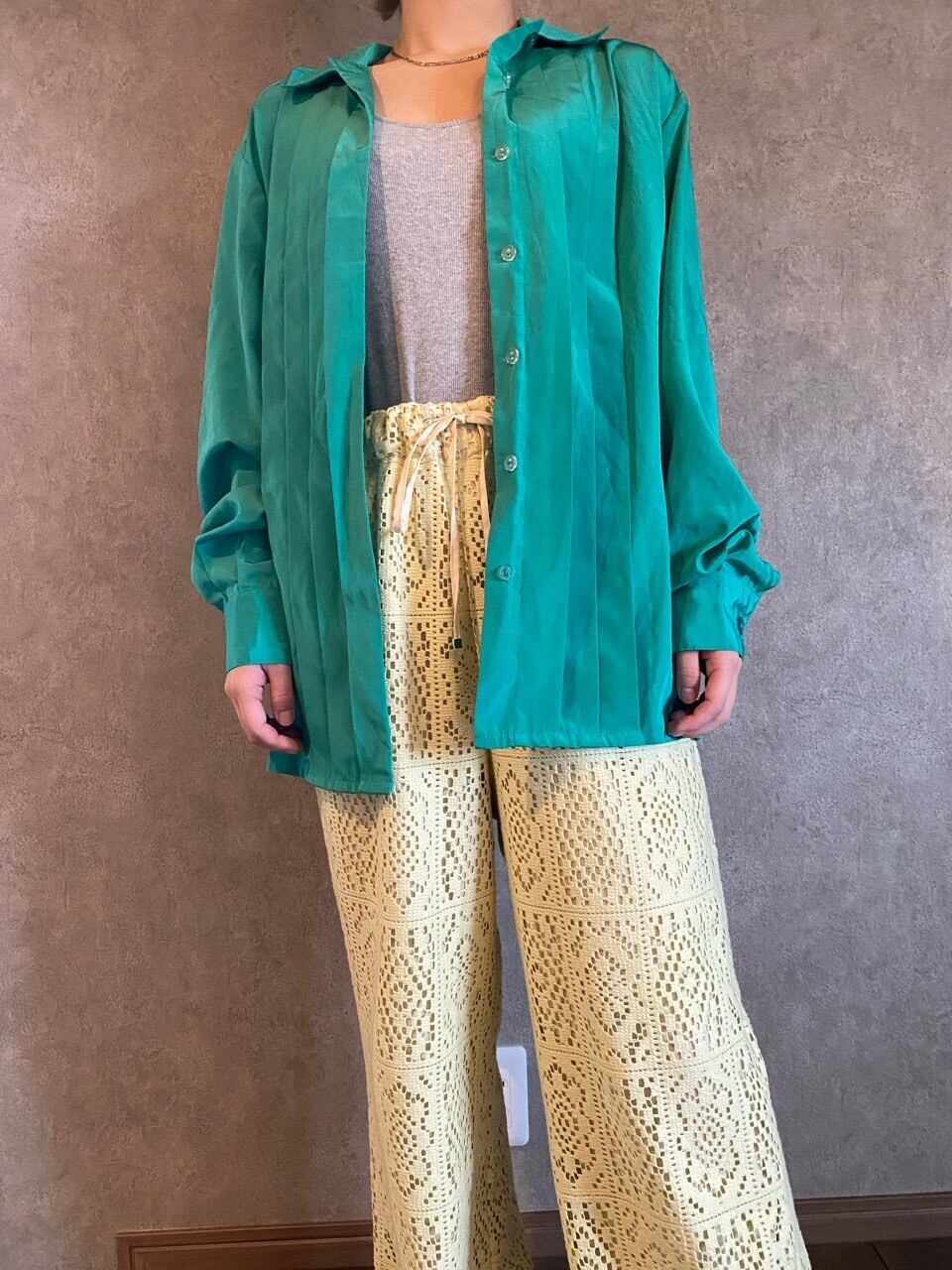 鮮やかなエメラルドグリーンがパッと目を引く春夏にぴったりな一枚。