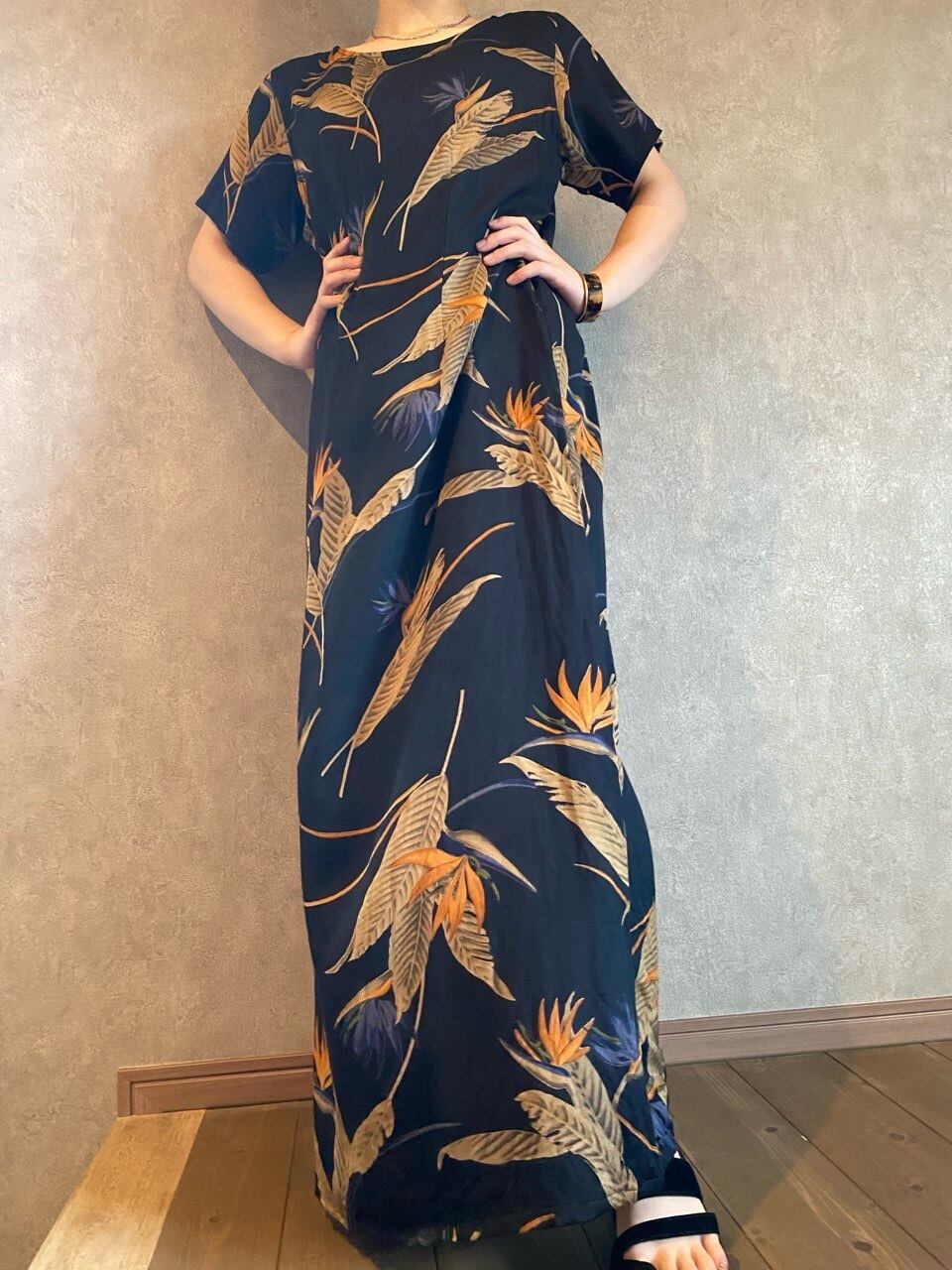トミーバハマのボタニカル柄の落ち着いたワンピース。