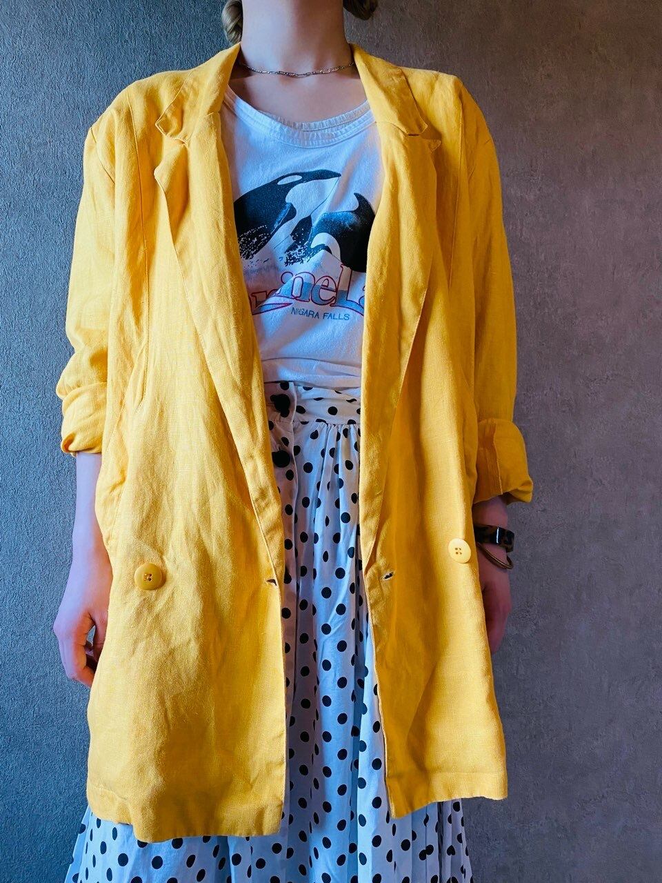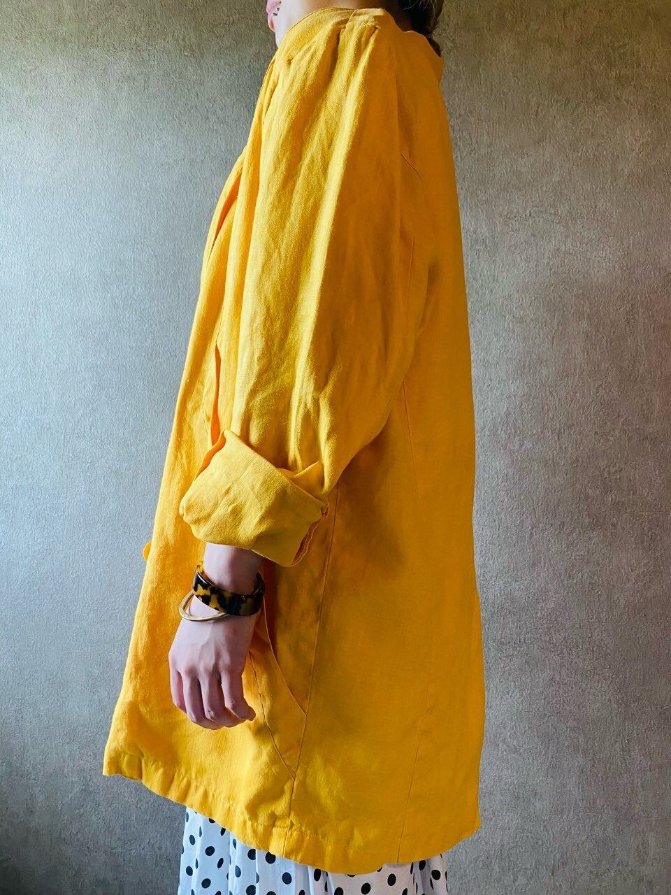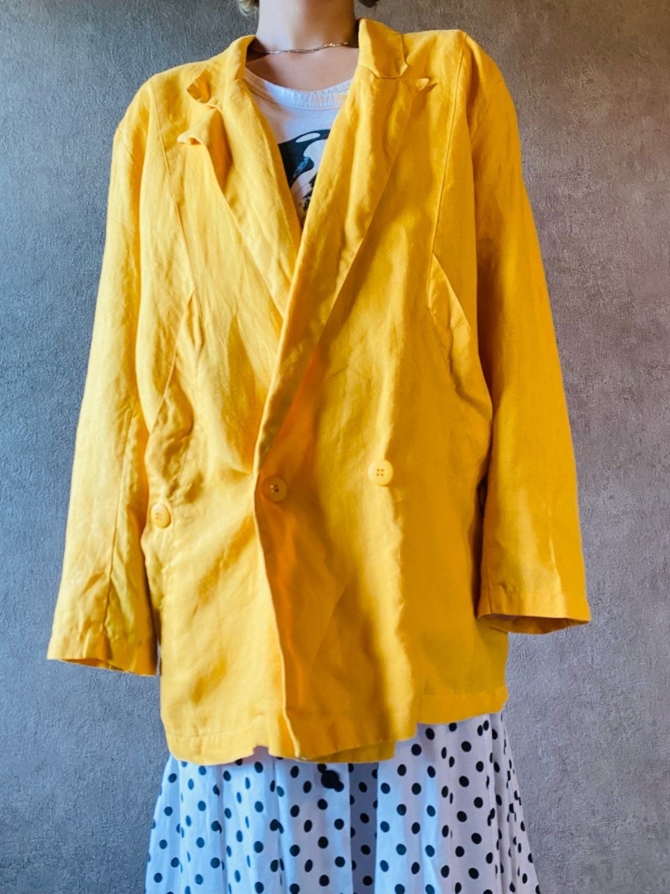 パッと目を引くビタミンカラーのテーラードジャケット。